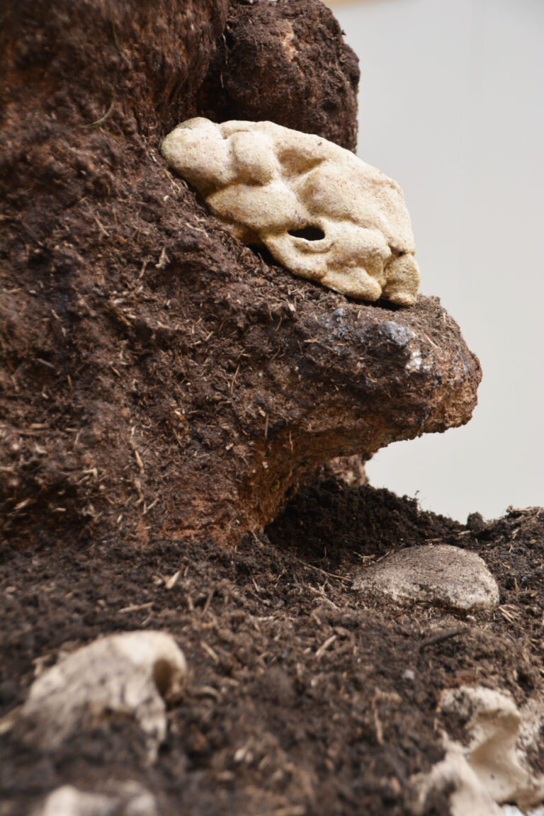 The form of the sculpture emerged partly through intuition, yet it’s rooted in my fascination with ancient monuments and forgotten ruins — human-made structures that once held meaning, now quietly absorbed back into the landscape. They seem to preserve something without revealing what it is. In this installation, I wanted to make that feeling vidible: the idea of a place that carries, preserves, and protects something.